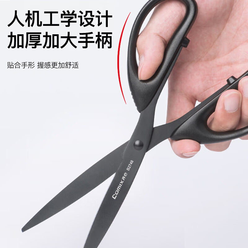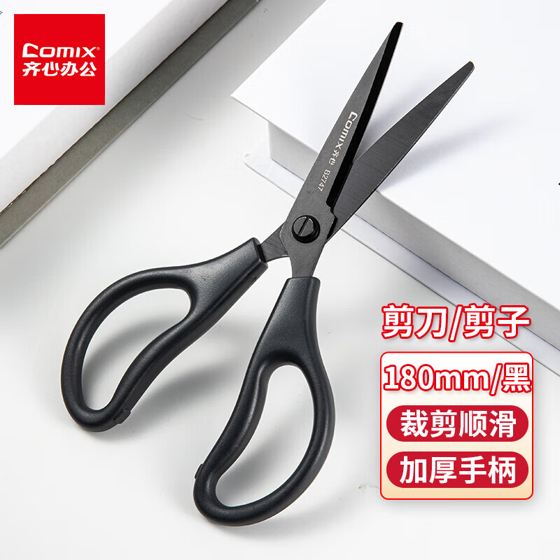 齐心(Comix)剪刀/剪子 黑刃工艺防锈省力设计180mm办公用品家用工具B2747