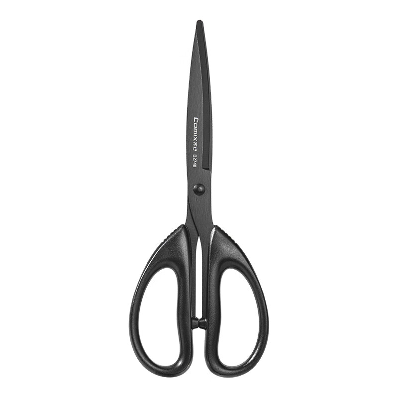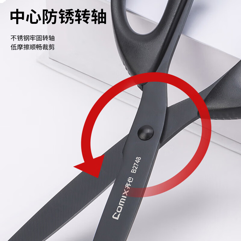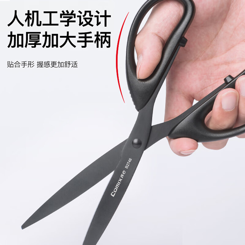 齐心 剪刀黑刃耐磨 学生剪纸刀大号210mm办公家用剪刀不锈钢刀刃不易粘防锈省力结构 B2748