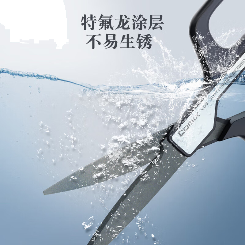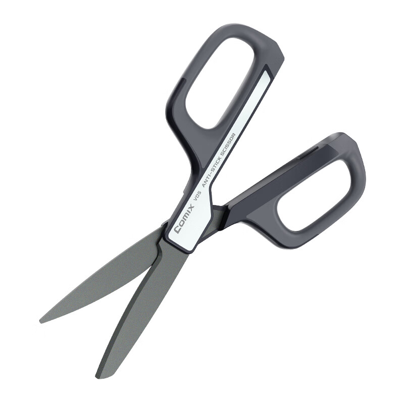 齐心(COMIX)特氟龙省力剪刀 弧形剪片省力设计办公文具/家用 176mm深蓝 远见系列V05