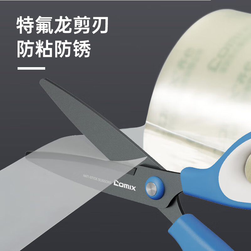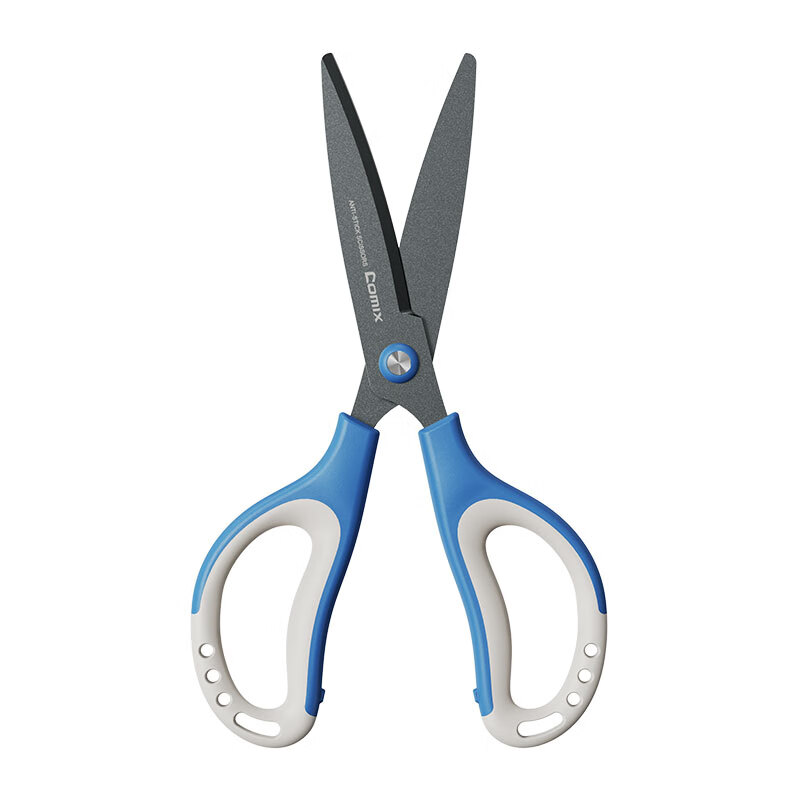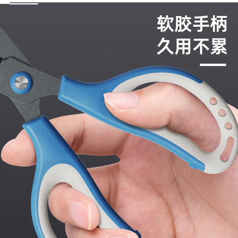 齐心 178mm特氟龙防粘剪刀 软胶手柄弧形剪片省力设计 家用剪手工剪纸开箱刀 蓝色EB6055