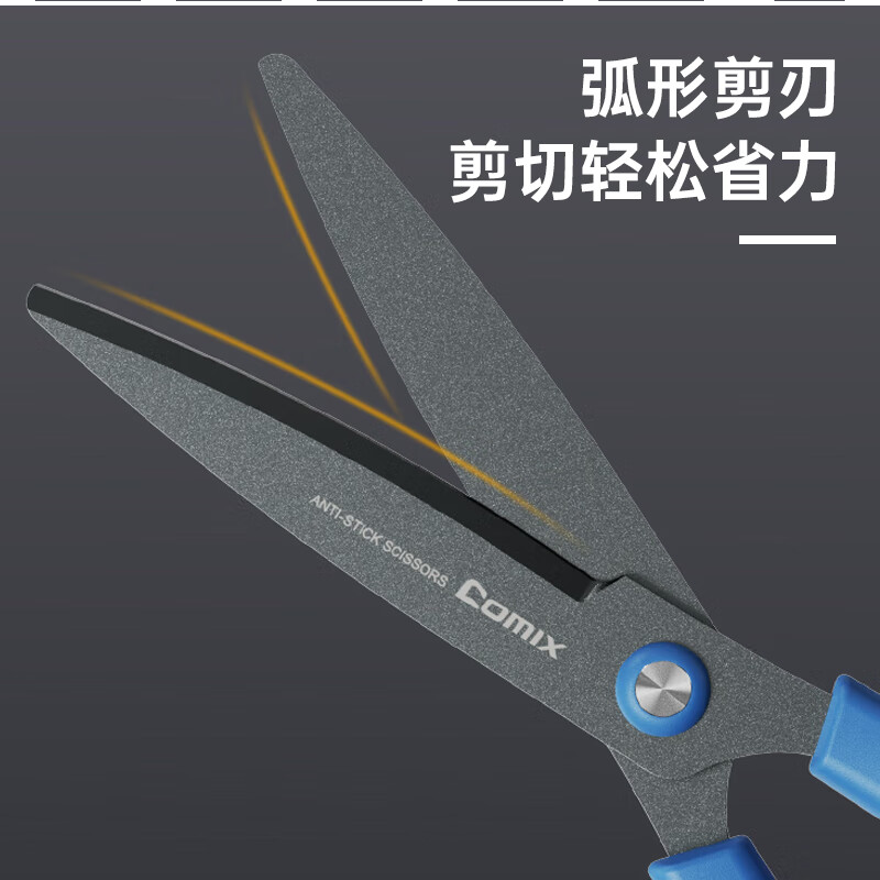 齐心(COMIX)178mm特氟龙防粘剪刀 软胶手柄弧形剪片省力设计 家用剪手工剪纸开箱刀 黑色EB6055