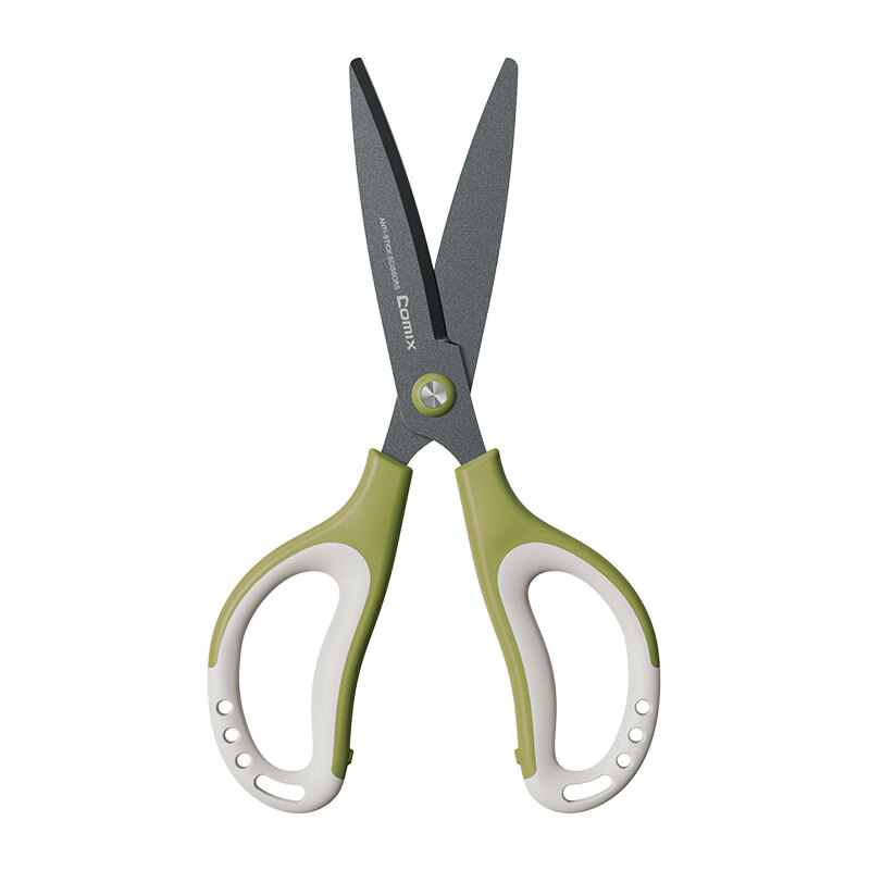 齐心(COMIX)178mm特氟龙防粘剪刀 软胶手柄弧形剪片省力设计 家用剪手工剪纸开箱刀 绿色EB6055
