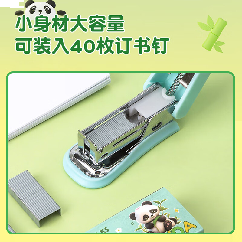 齐心 迷你订书机套装(订书器+订书钉)熊猫系列订书器 mini便携装订器 蓝色PDBZ0052