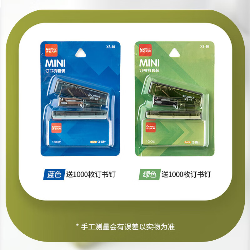 齐心(Comix)迷你学生订书机套装 时尚便捷(订书器+订书钉) 赠送1000枚钉 XS-10透明蓝