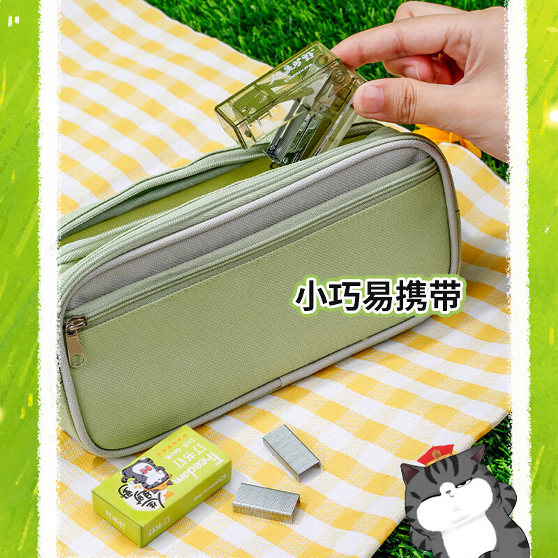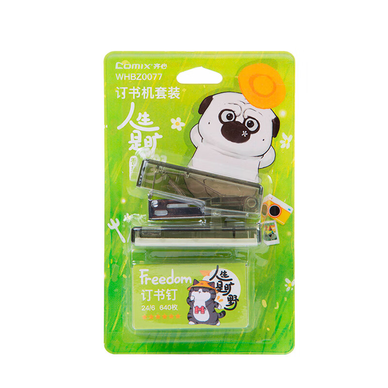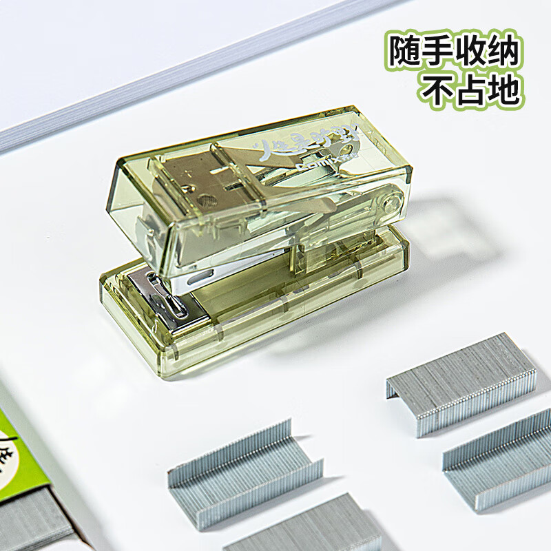 齐心 吾皇猫迷你订书机套装(订书机+订书钉)学生办公轻巧装订器/订书器 透明绿 EWHBZ0119