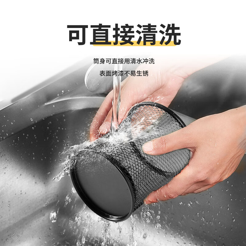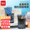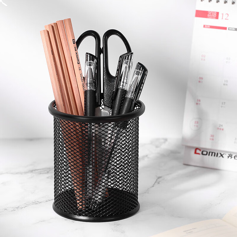 齐心(Comix)金属网纹圆形笔筒办公收纳 黑色金属简约创意桌面收纳盒 办公文具工具B2259
