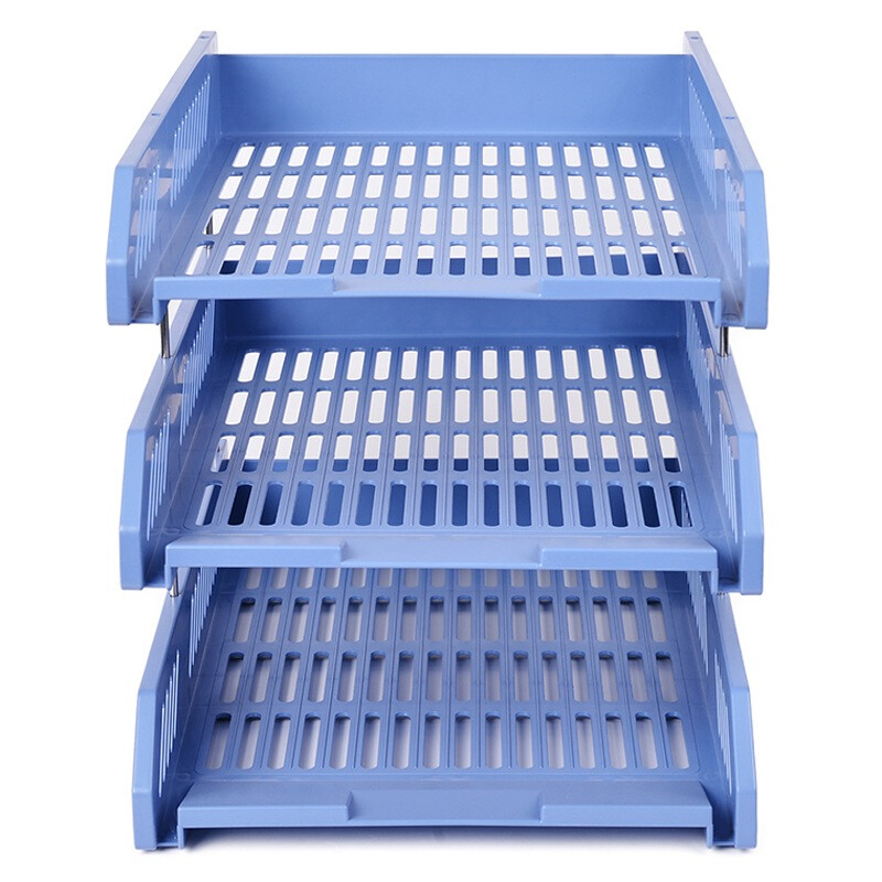 齐心(COMIX)三层镂空收纳文件座 自由拆卸组装三层文件盘/文件框/文件架 牢固耐用 办公用品 蓝色EB709/B2060