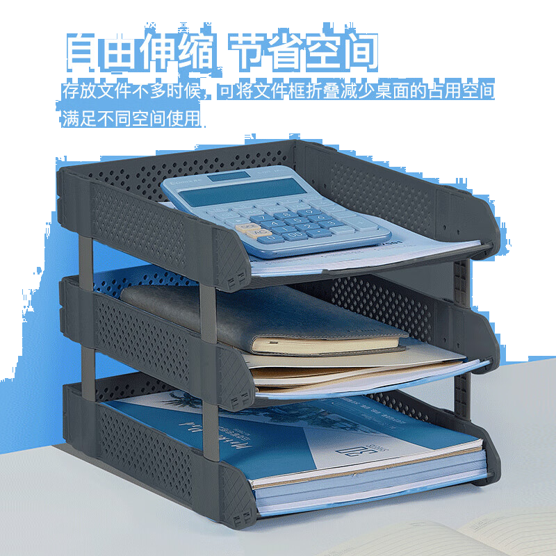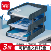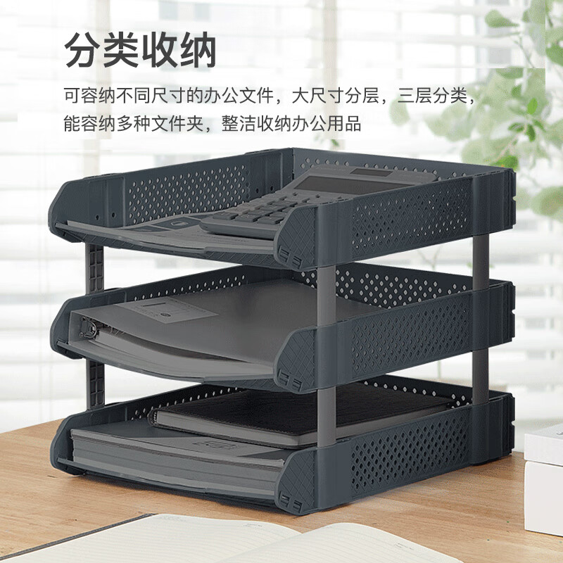 齐心(COMIX)可折叠三联文件盘收纳文件座文件框文件架 深灰B2069
