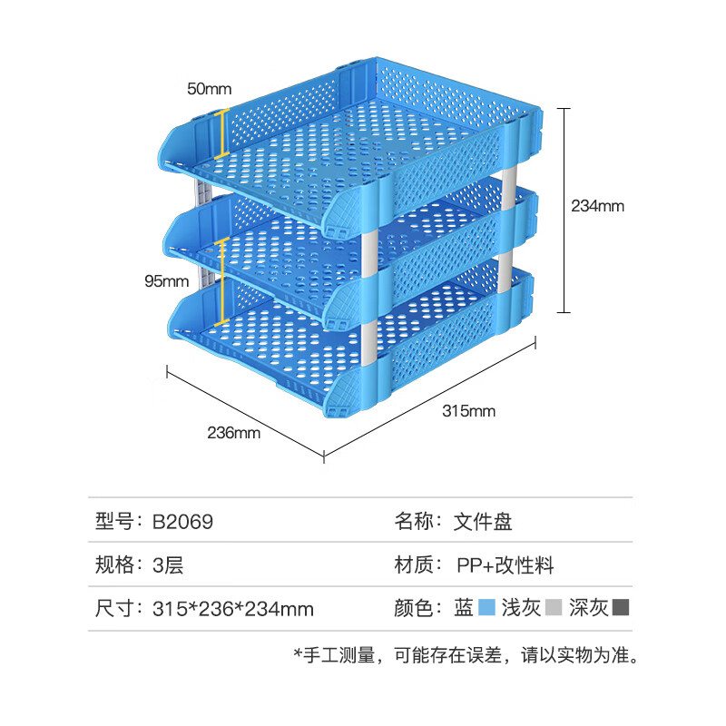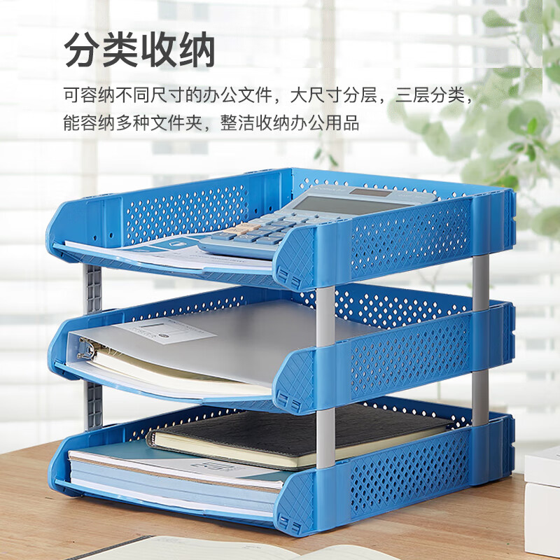 齐心(COMIX)可折叠三联文件盘收纳文件座文件框文件架 蓝色B2069