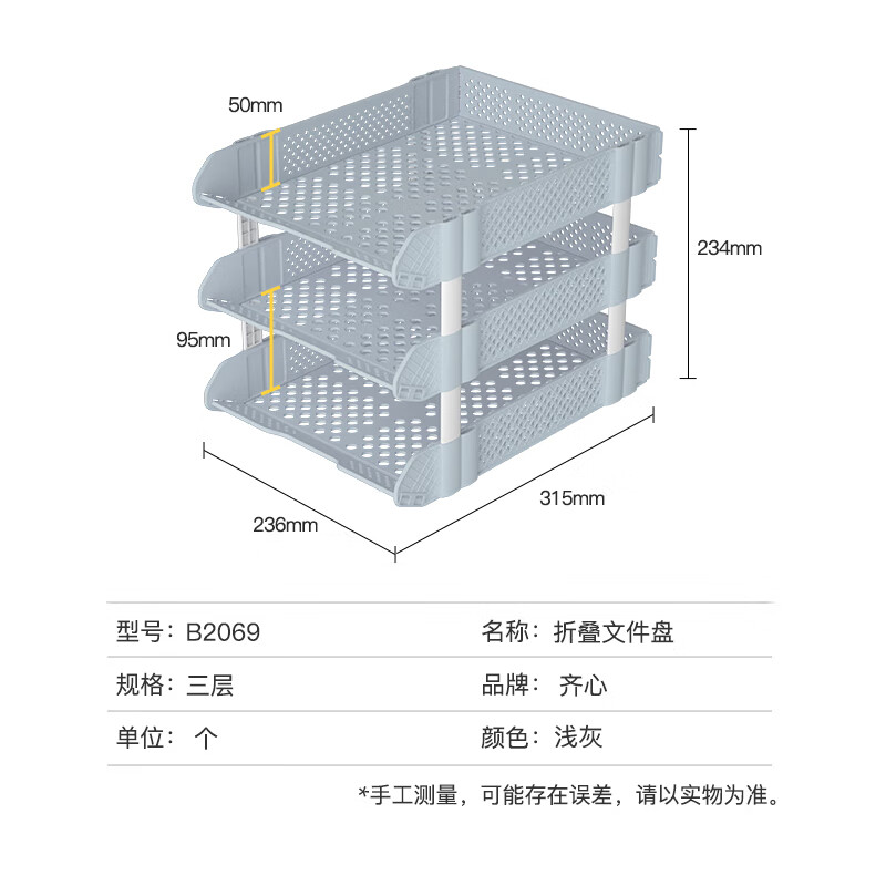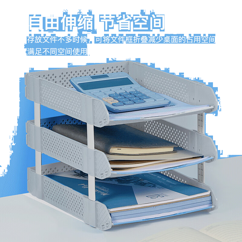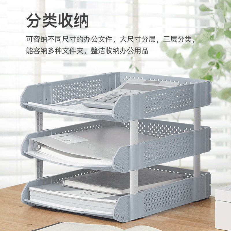 齐心(COMIX)可折叠三联文件盘收纳文件座文件框文件架 浅灰B2069