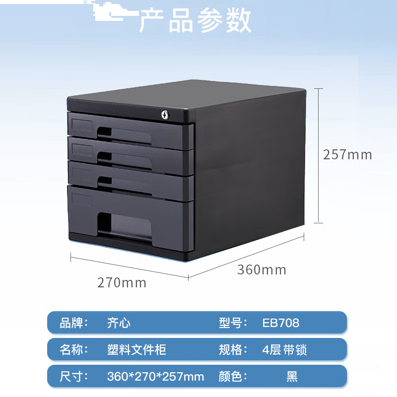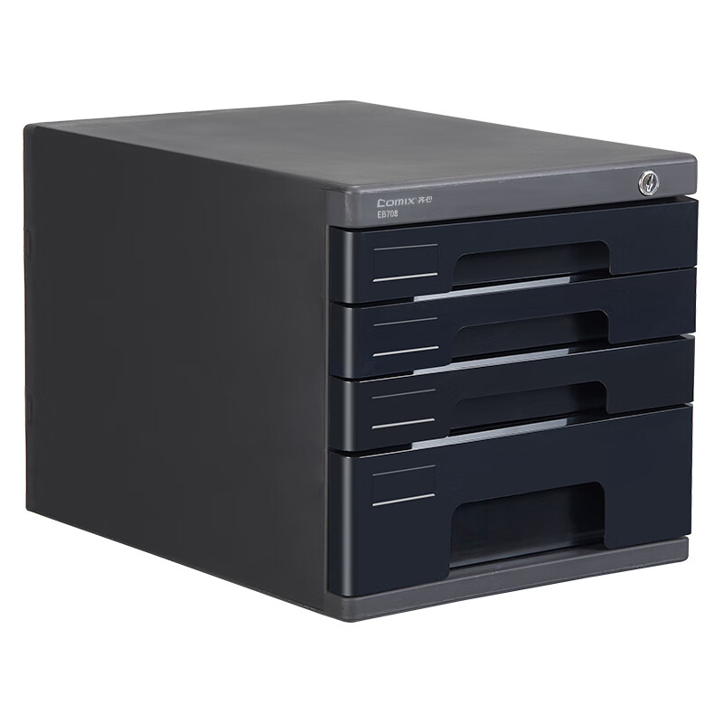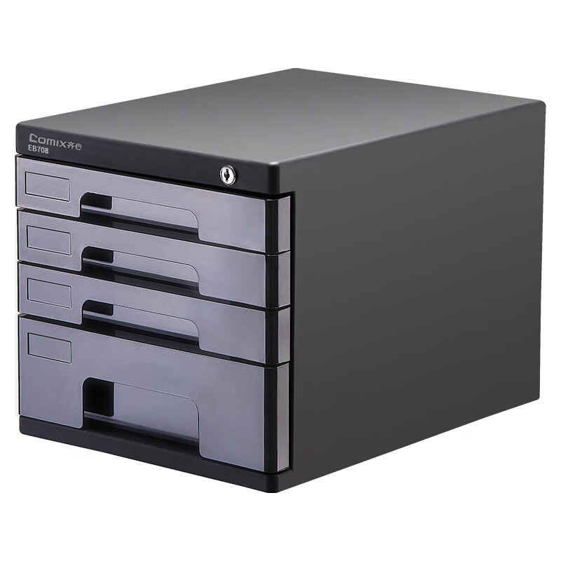齐心(COMIX)4层带锁文件柜收纳柜抽屉式 塑胶拉手带索引 标签学科试卷分类收纳 黑色EB708