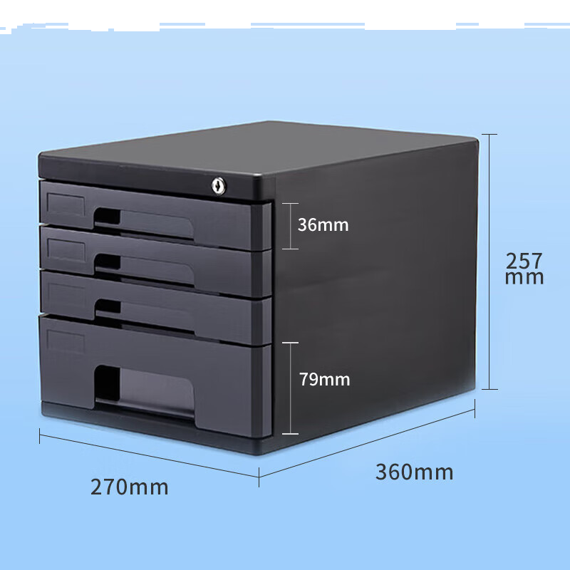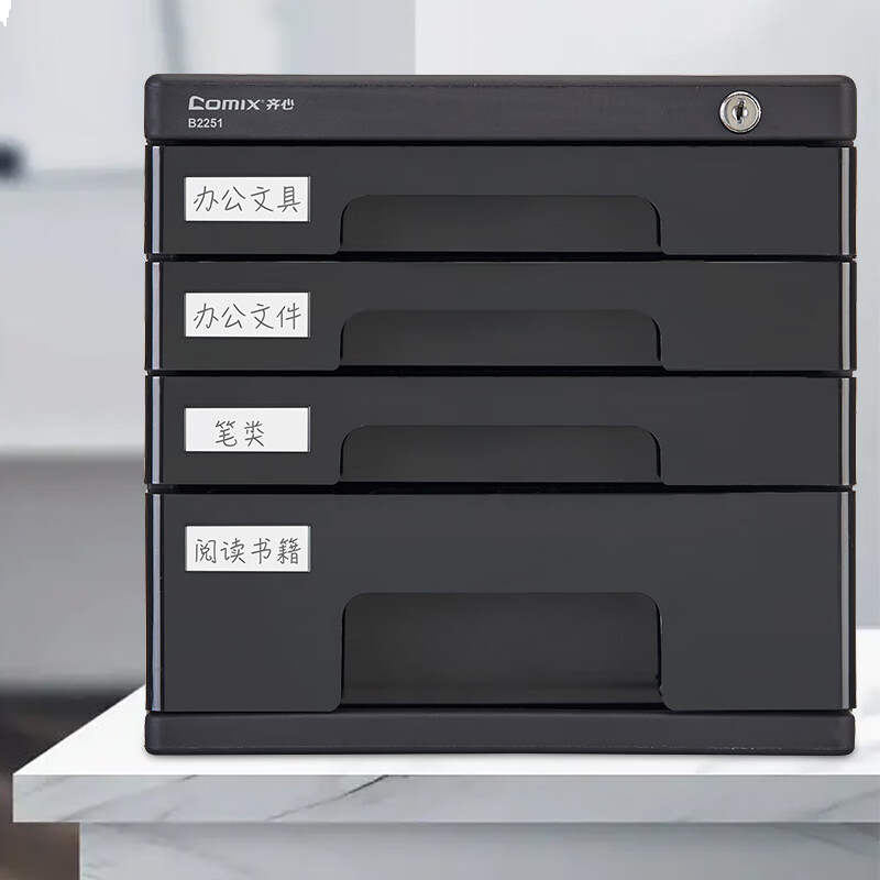 齐心(Comix)4层带锁桌面文件柜抽屉式拉手塑胶收纳柜带索引标签办公用品 黑色B2251