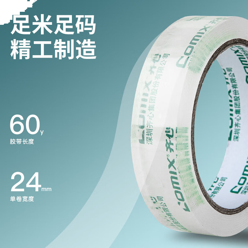 齐心 高透明封箱胶带/物流打包胶带/家用胶带24mm*60y*50um(12卷) JT2406-12