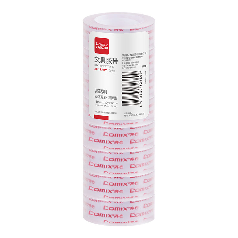 齐心(Comix)透明胶带 易撕文具胶带8卷装 18mm*30y*38μm 高粘性 JF1830Y