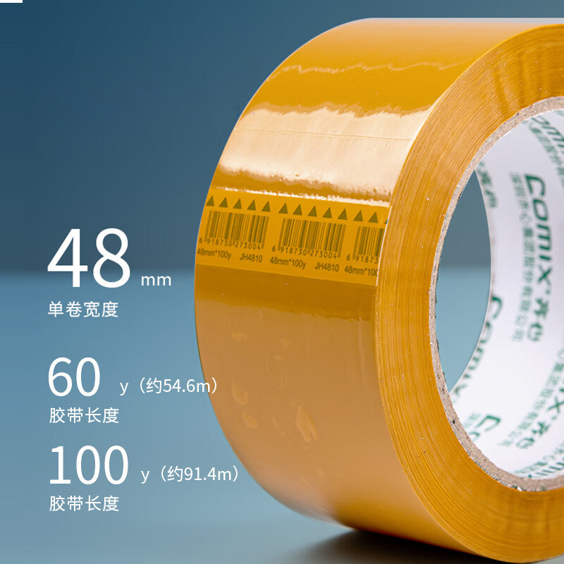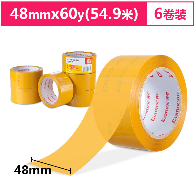 齐心 米黄色强粘性打包标识胶带 宽48mm*60y*50um长54.6米 6卷装 JH4806-6