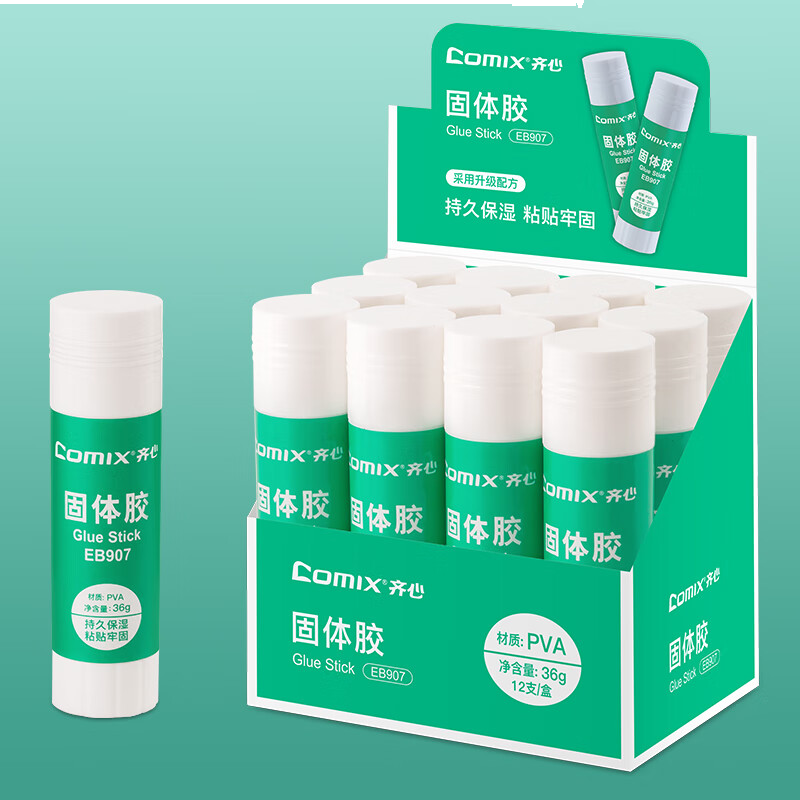 齐心 36g固体胶水/胶棒 PVA固体胶 手工DIY财务 办公用品 12支/盒 EB907