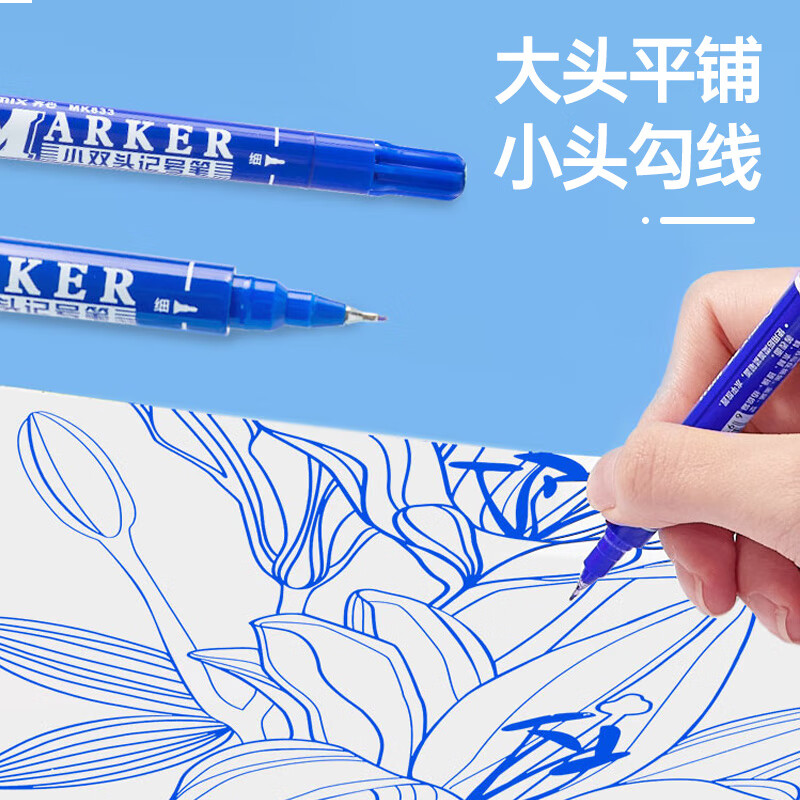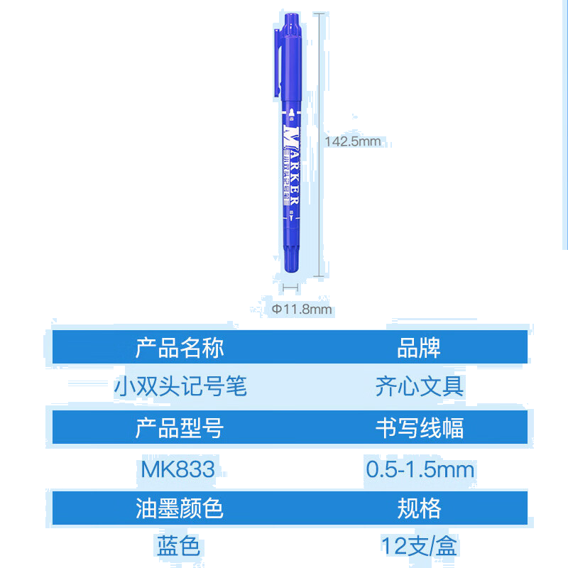 齐心小双头记号笔/勾线笔绘画/物流油性笔/ 线幅0.5-1.5mm/蓝 12支/盒 MK833