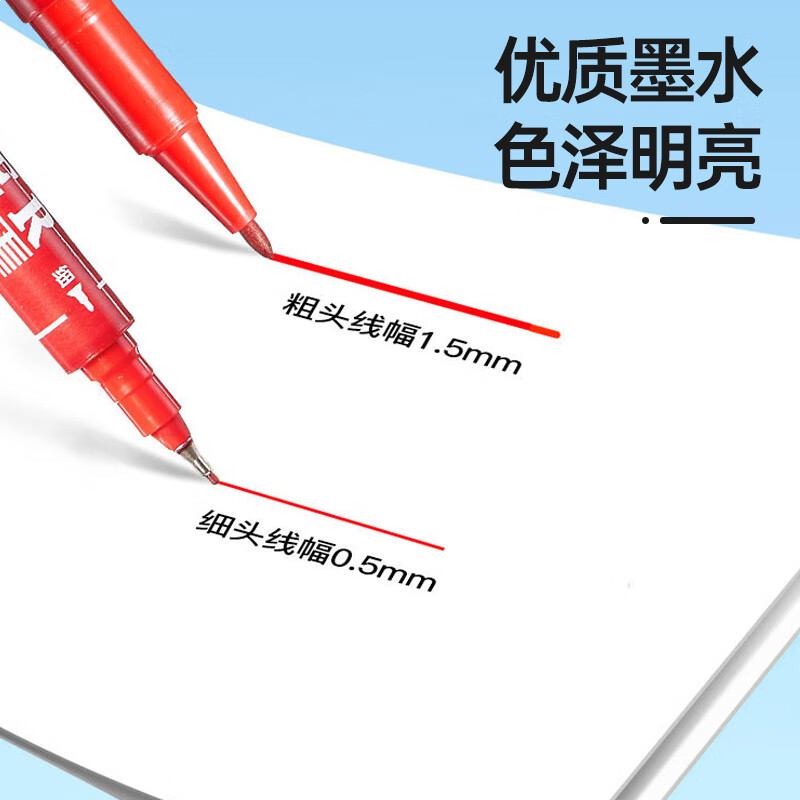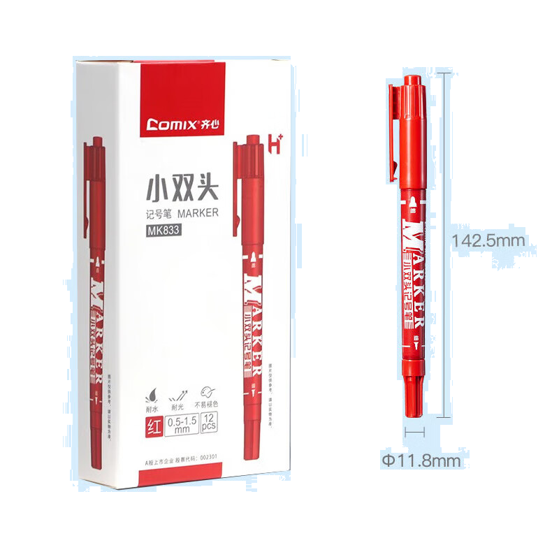 齐心(Comix)小双头记号笔/勾线笔绘画/物流油性笔/ 线幅0.5-1.5mm/红 12支/盒 MK833
