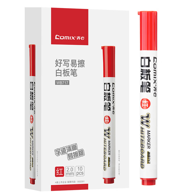 齐心(Comix)好写易檫办公会议白板笔/办公文具 2.0mm红 10支/盒 WB717