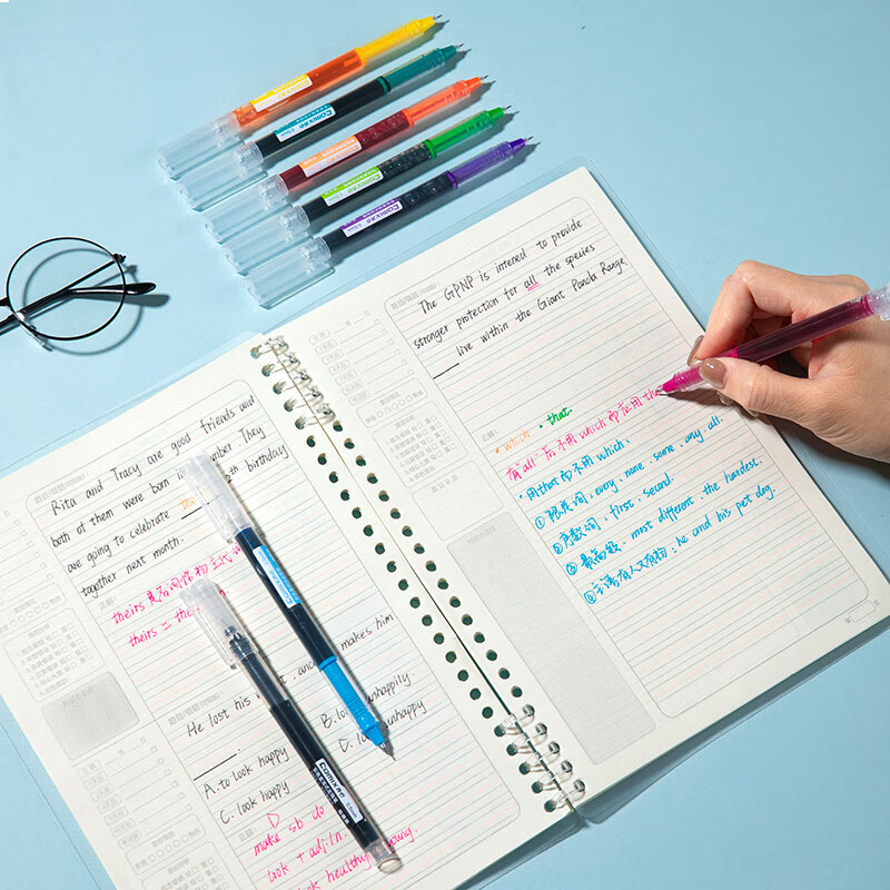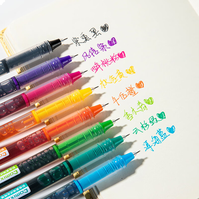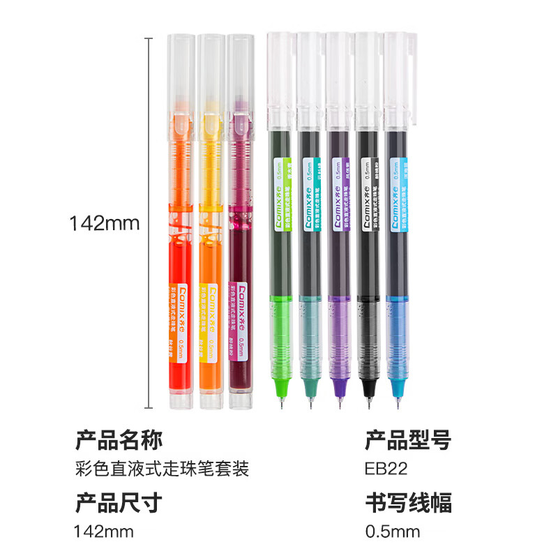 齐心 彩色直液笔套装 0.5mm全针管学生签字笔中性笔 水笔走珠笔8支/盒EB22