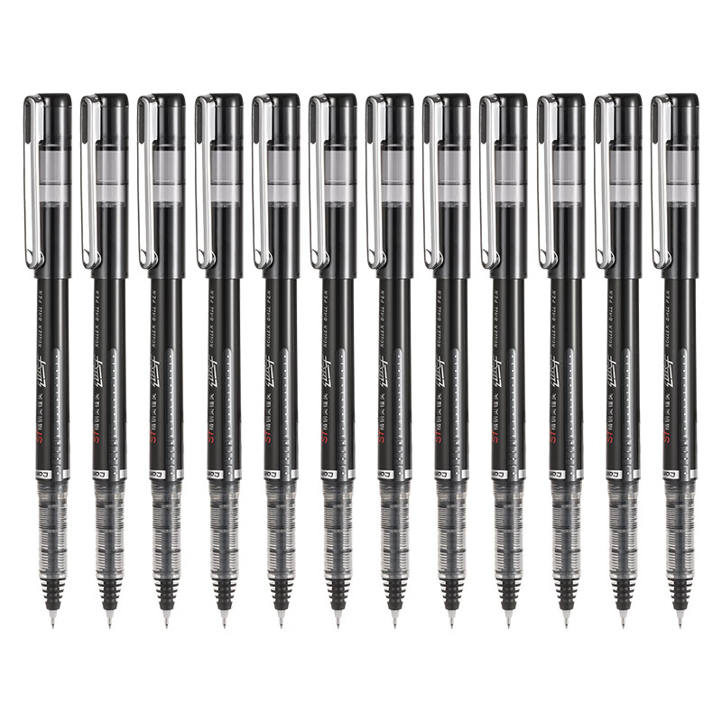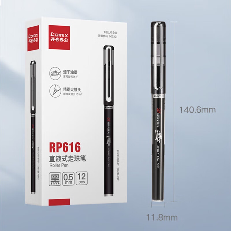 齐心(Comix) RP616 速干直液式走珠笔 ST精钢尖锥头 0.5mm 黑 12支装
