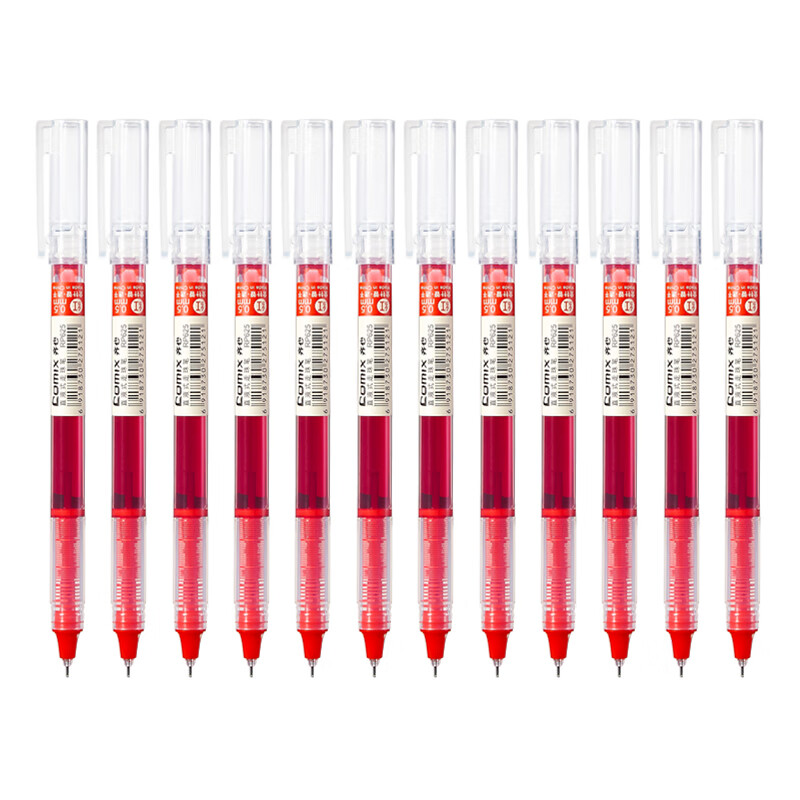 齐心(Comix)全针管直液式走珠笔/速干墨水中性笔 0.5mm红 12支/盒RP625