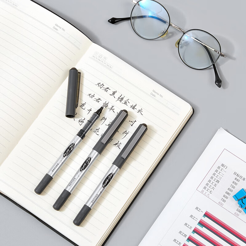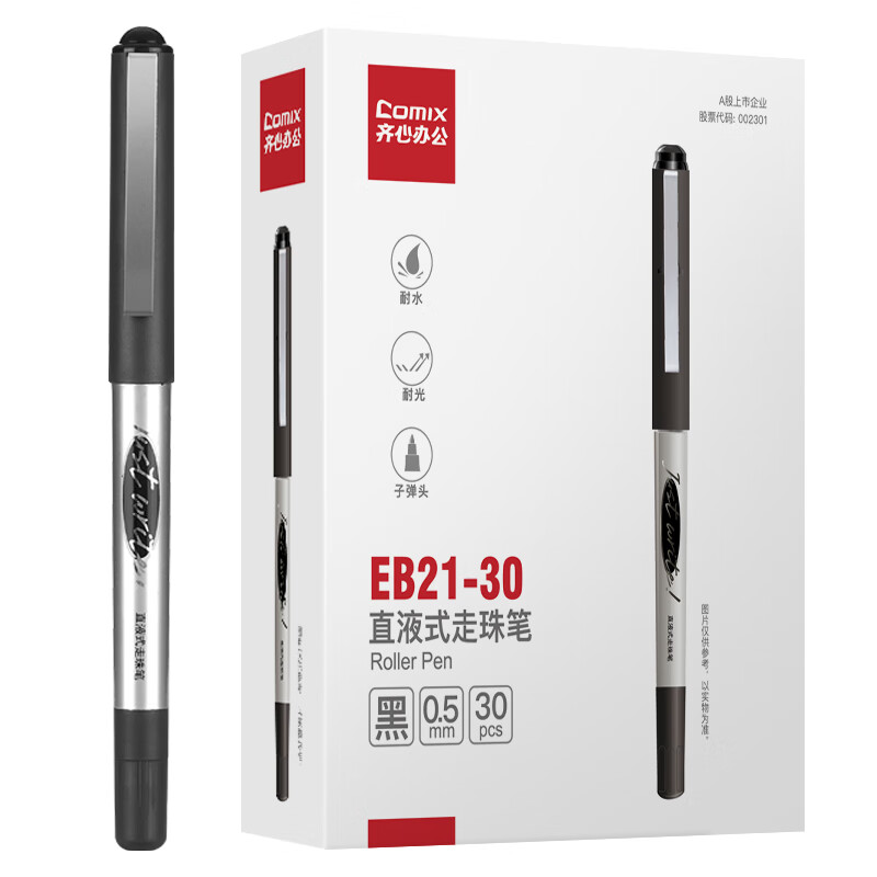 齐心 30支装 直液式走珠笔0.5mm子弹头中性笔学生签字笔办公水笔走珠笔 黑色 EB21-30