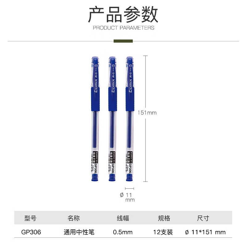 齐心 12支装0.5mm 经济实用商务中性笔/水笔/签字笔 蓝色 办公文具 GP306