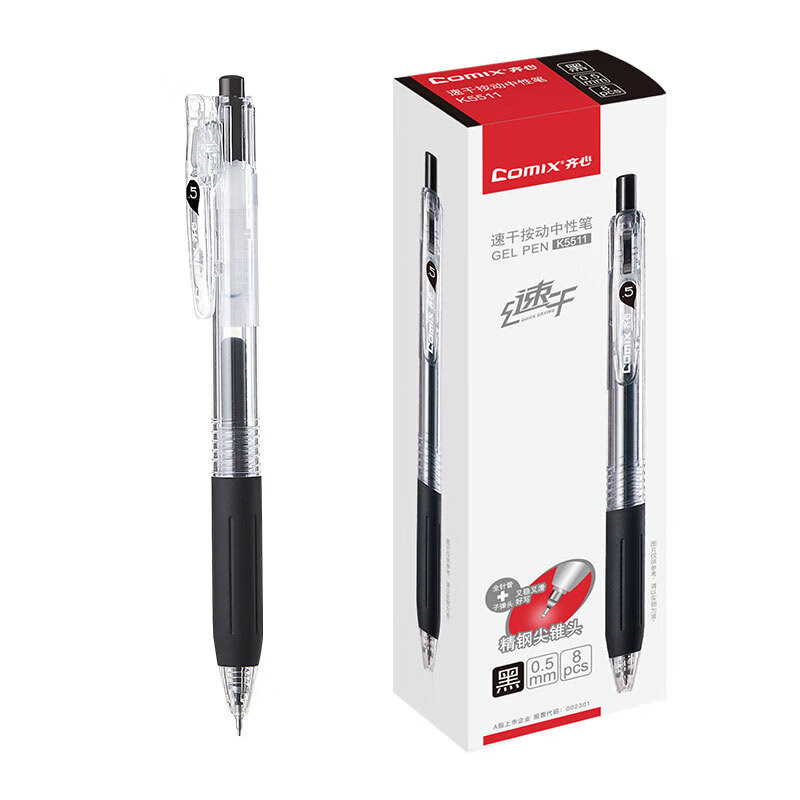 齐心(Comix)速干按动中性笔ST尖签字笔办公会议笔水笔 0.5mm 黑色 8支装 K5511