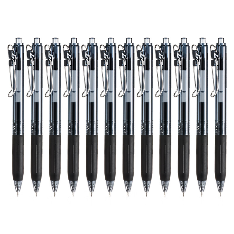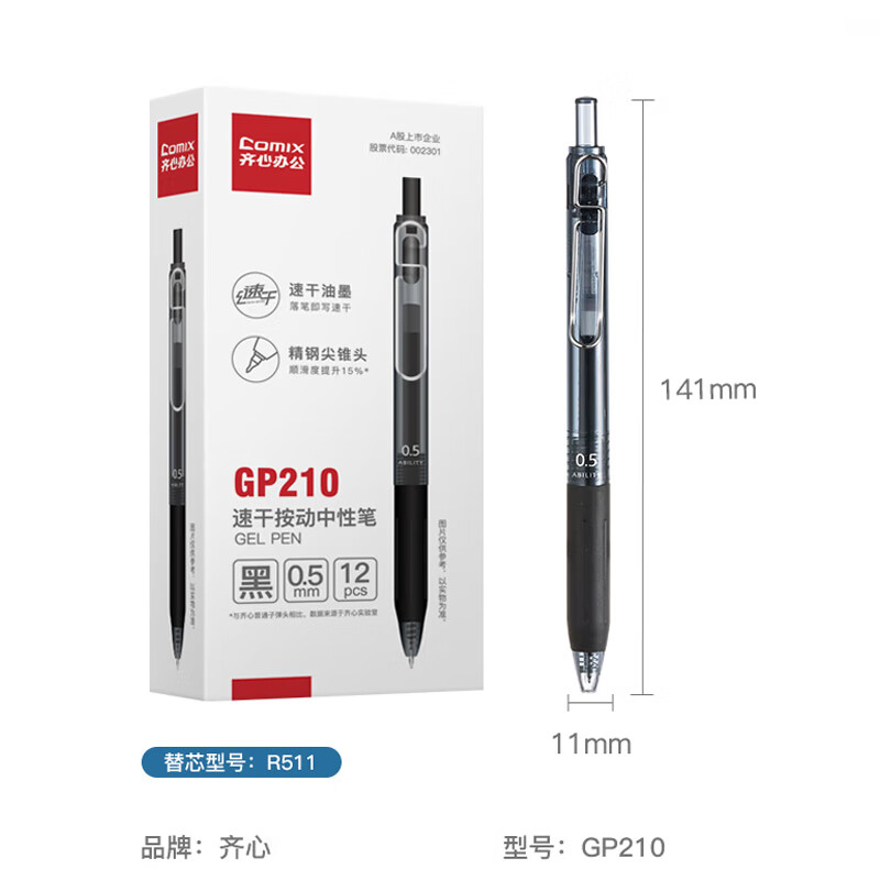 齐心(Comix)速干按动中性笔0.5mmST精钢尖锥头签字笔水笔 黑色 12支装 GP210