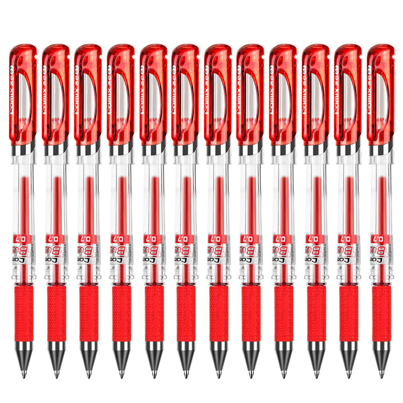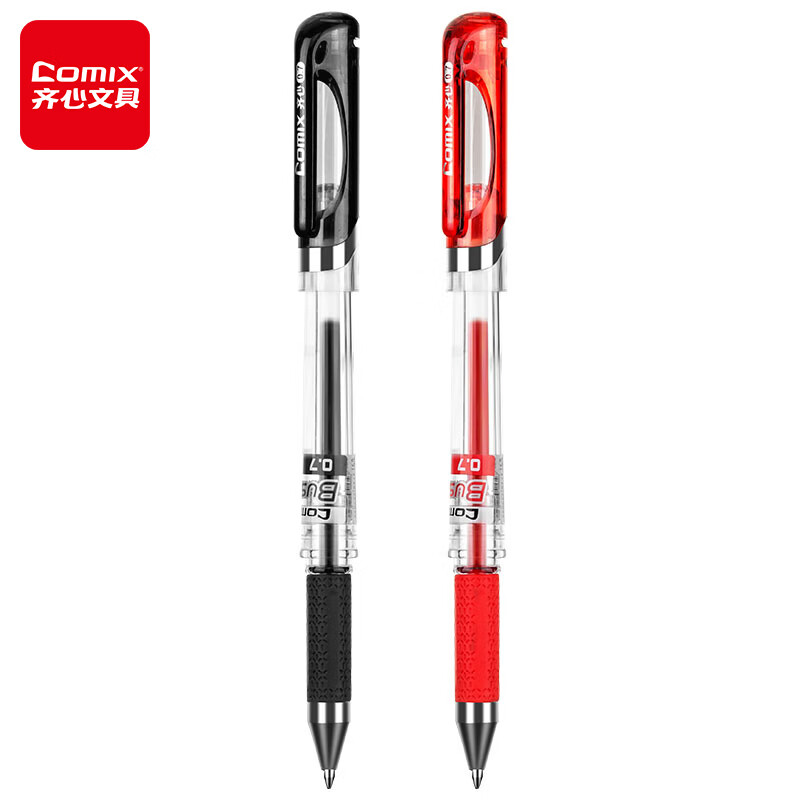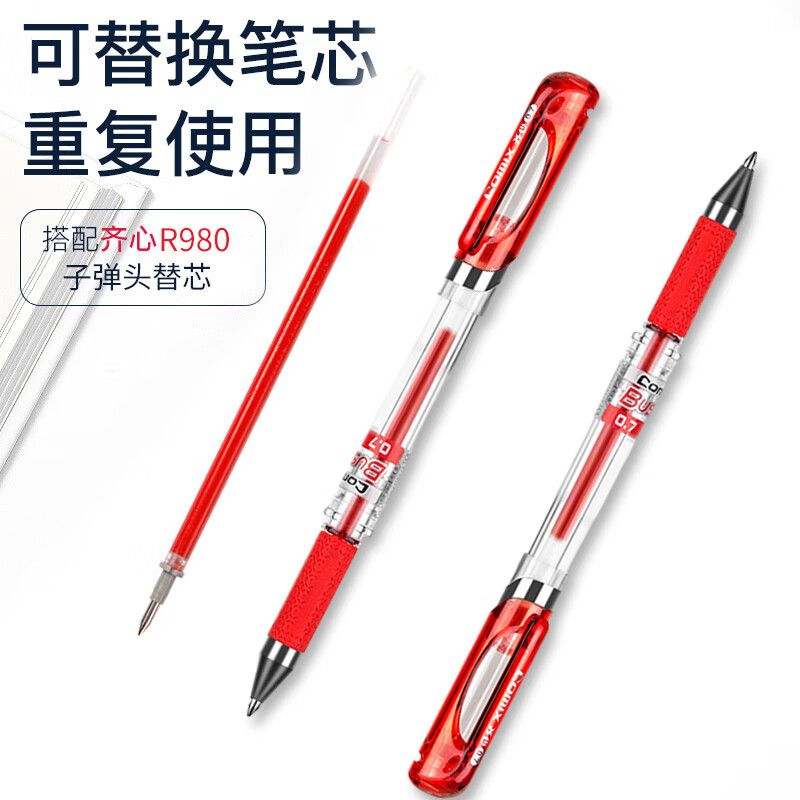 齐心(Comix)12支装红色0.7mm商务拔帽中性笔签字笔水笔子弹头 GP1111-X