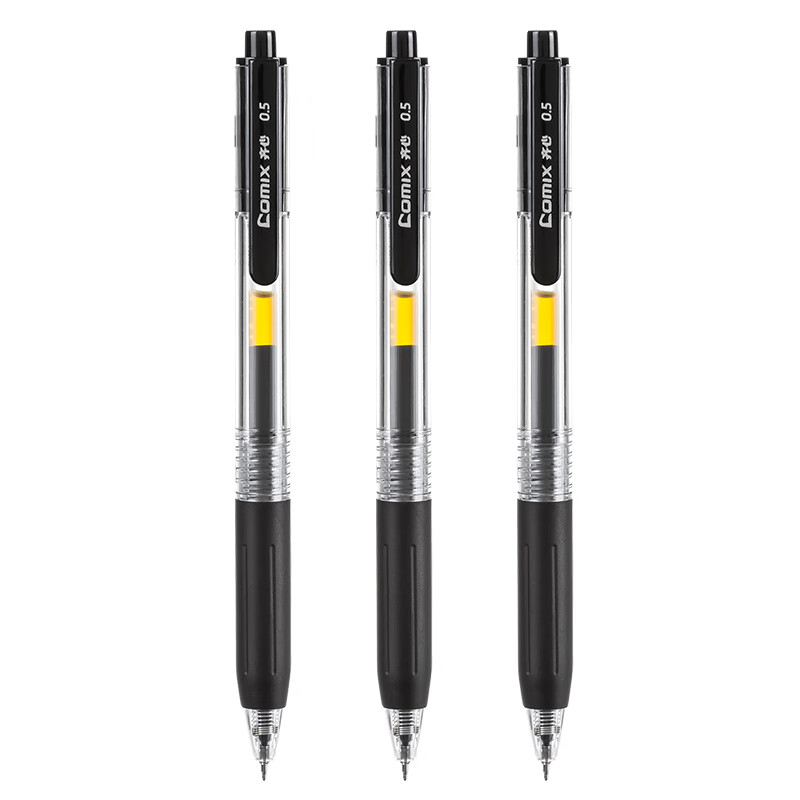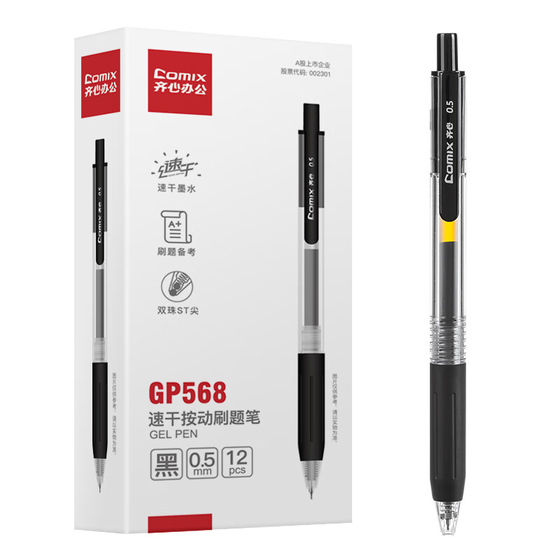 齐心 顺滑速干按动刷题中性笔签字笔水笔 0.5mm双珠ST头 黑色 12支/盒 GP568