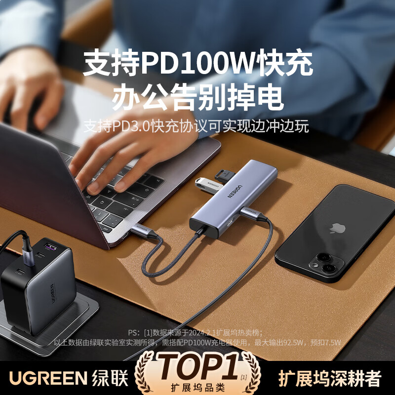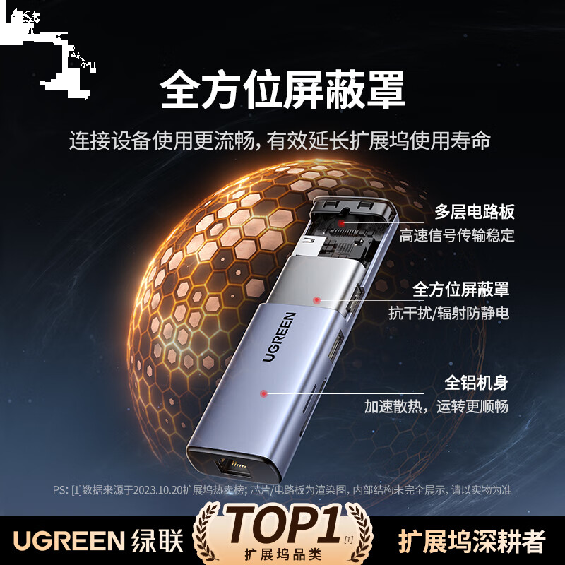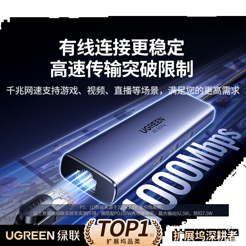 绿联Type-C扩展坞千兆网口拓展坞USB分线器雷电4转HDMI网线转接器4k高清适用华为苹果MacBook/Mac mini
