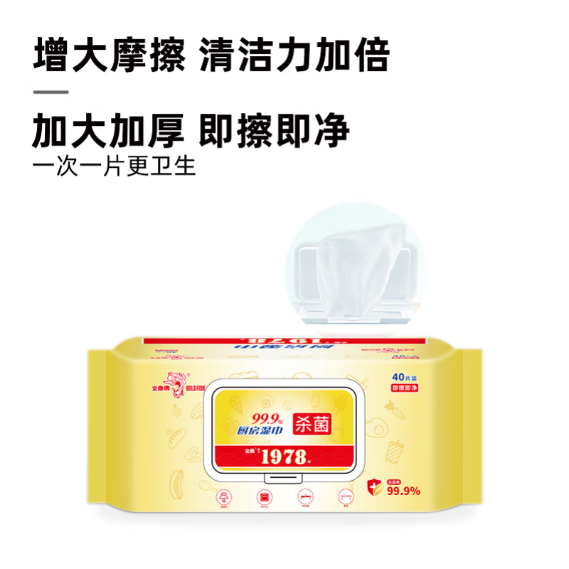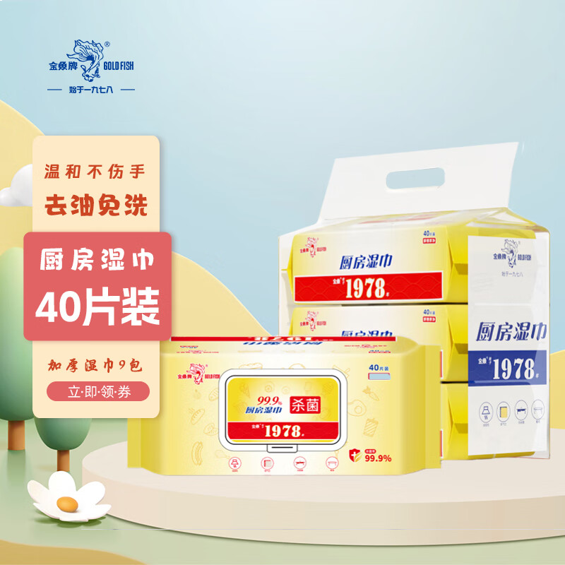 金鱼牌 GOLD FISH厨房湿巾去油污加厚家用卫生油烟机清洁40抽 【整箱厨房湿巾】40抽9包