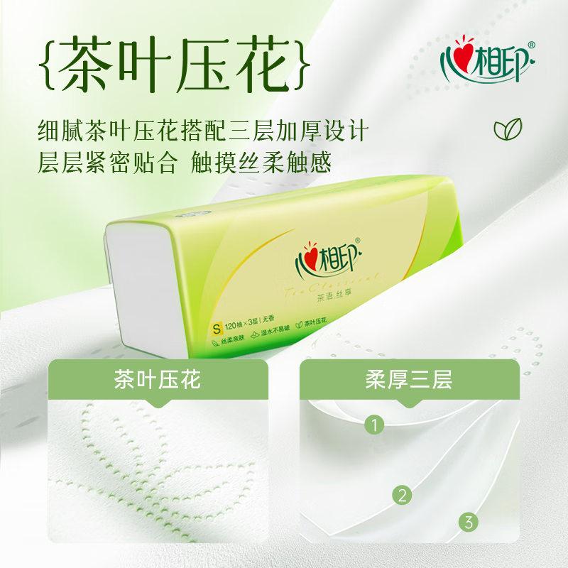 心相印抽纸【肖战同款】茶语丝享 3层120抽*27包真S码 纸巾 卫生纸 整箱