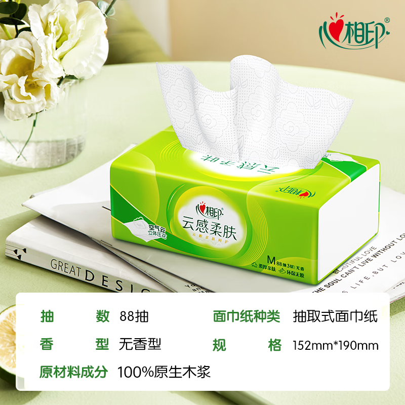 心相印抽纸 【肖战推荐】云感3层88抽*8包真M码面巾纸