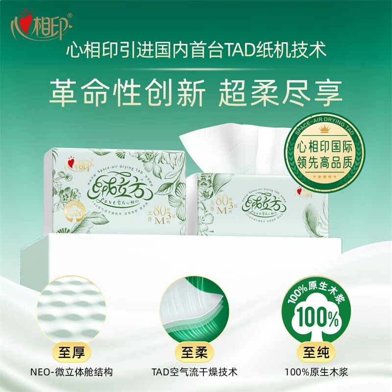 心相印抽纸 绒立方系列80抽*6包M码柔厚加倍 吸水性强