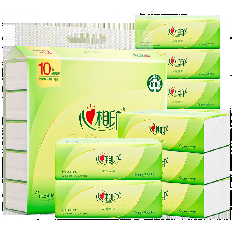 心相印手帕纸 茶语丝享 3层28张*10包 便携纸巾 可湿水餐巾纸 小包抽纸