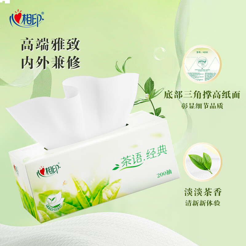 心相印抽纸/盒抽 茶语经典2层200抽*3盒纸巾 商务 会议 办公面巾纸 H200