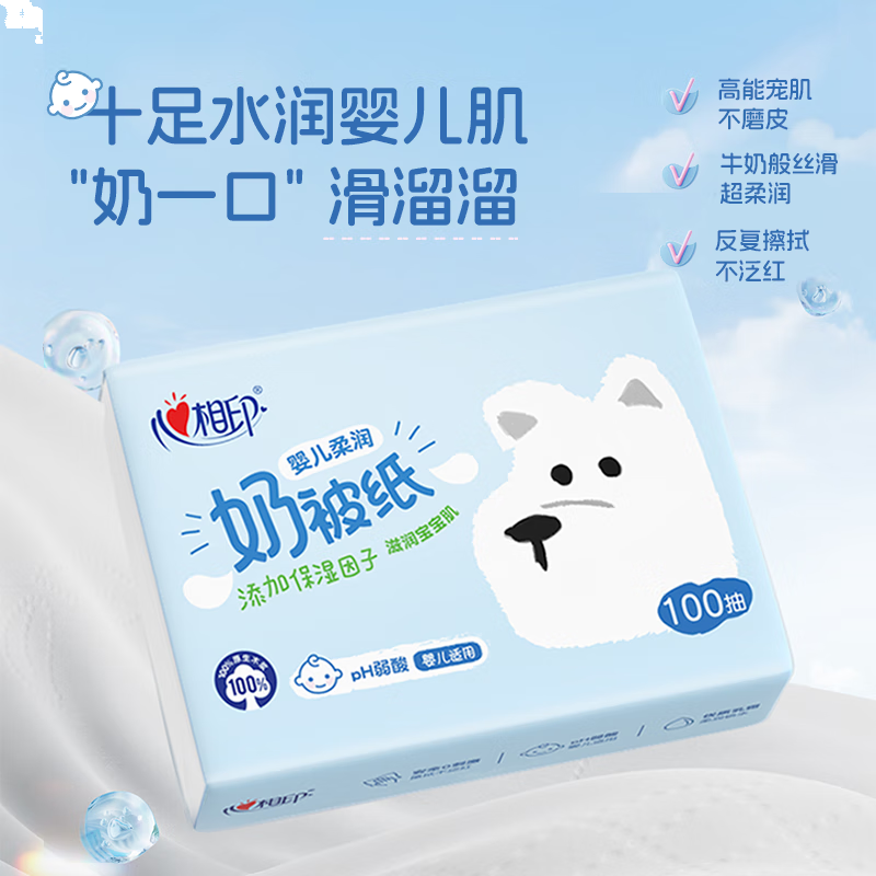 心相印抽纸 婴儿奶被乳霜柔纸巾3层100抽*18包保湿面巾纸 宝宝礼盒装