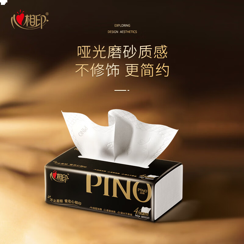 心相印抽纸【肖战同款】品诺黑色经典4层90抽*16包M码 大尺寸纸巾整箱