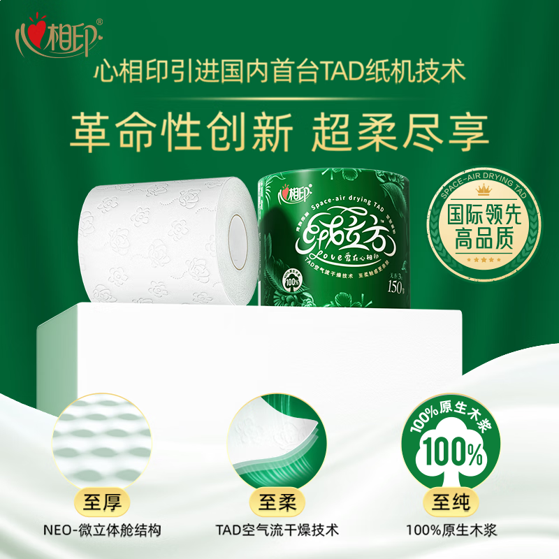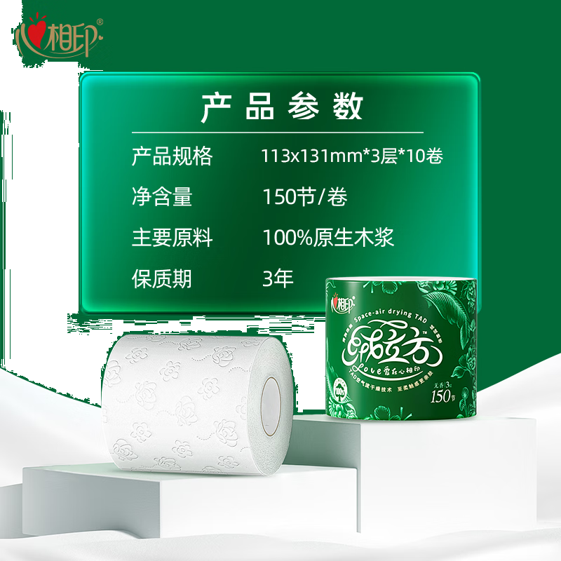心相印卷纸 绒立方系列 有芯3层150节*10卷 柔厚新升级 可冲散 无刺激