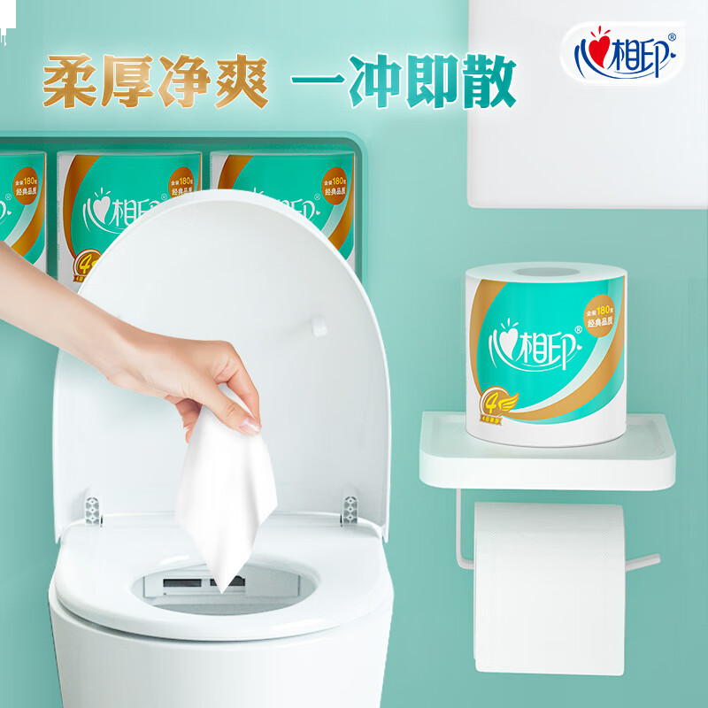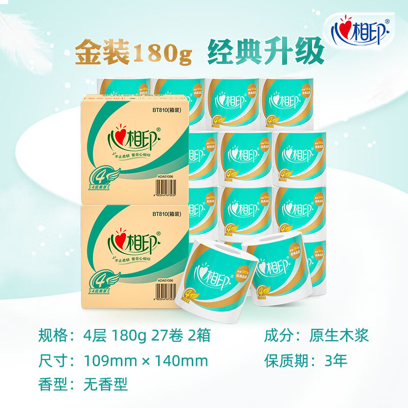 心相印卷纸 心柔有芯 4层180g*27卷*2箱 卫生纸巾 卷筒纸 整箱