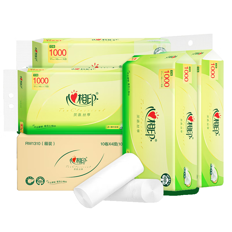 心相印无芯卷纸【肖战同款】茶语丝享4层100g*40卷 纸巾整箱(新老交替)
