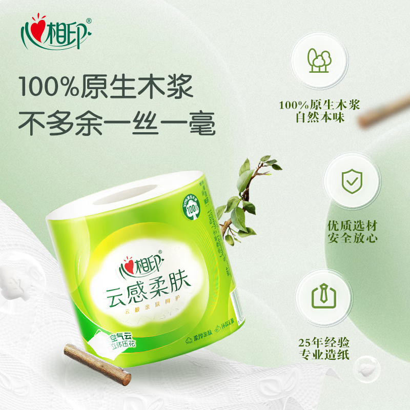 心相印卷纸 云感柔肤 有芯4层110g*30卷 卫生纸巾 卷筒纸 厕纸
