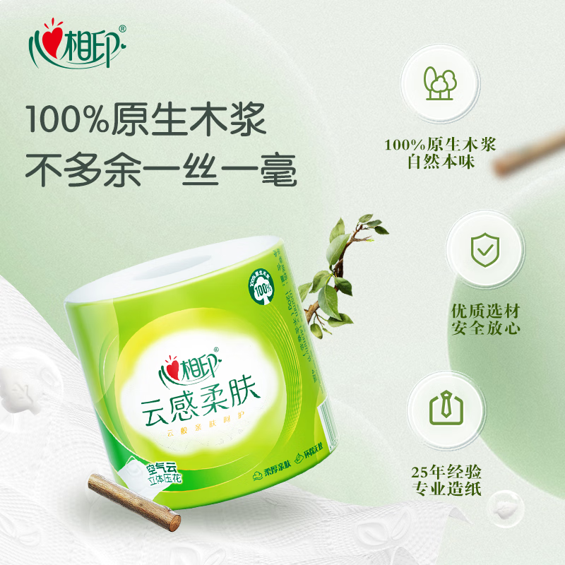 心相印有芯卷纸 云感柔肤4层120克*20粒 加厚纸巾 立体压花卫生纸