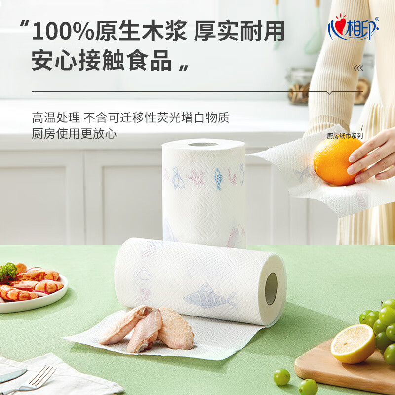 心相印卷纸/厨房用纸【肖战推荐】75节*8卷纸巾食品接触级(整箱销售 )