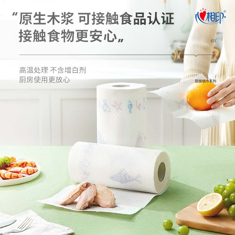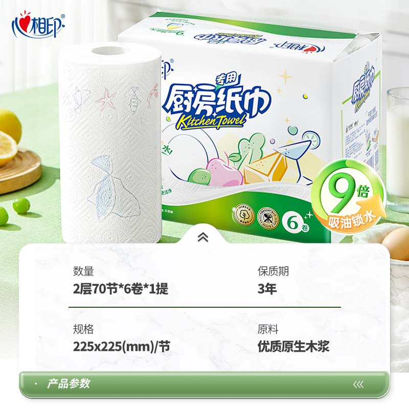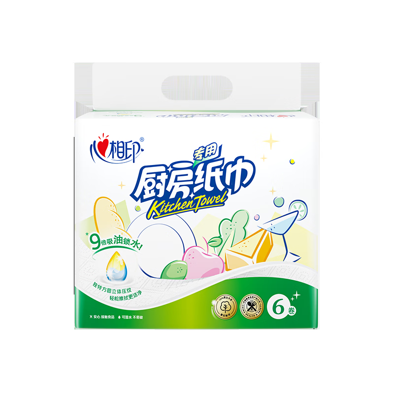 心相印厨房用纸 70节*6卷 吸油厨房纸巾 加大加厚食品可接触级