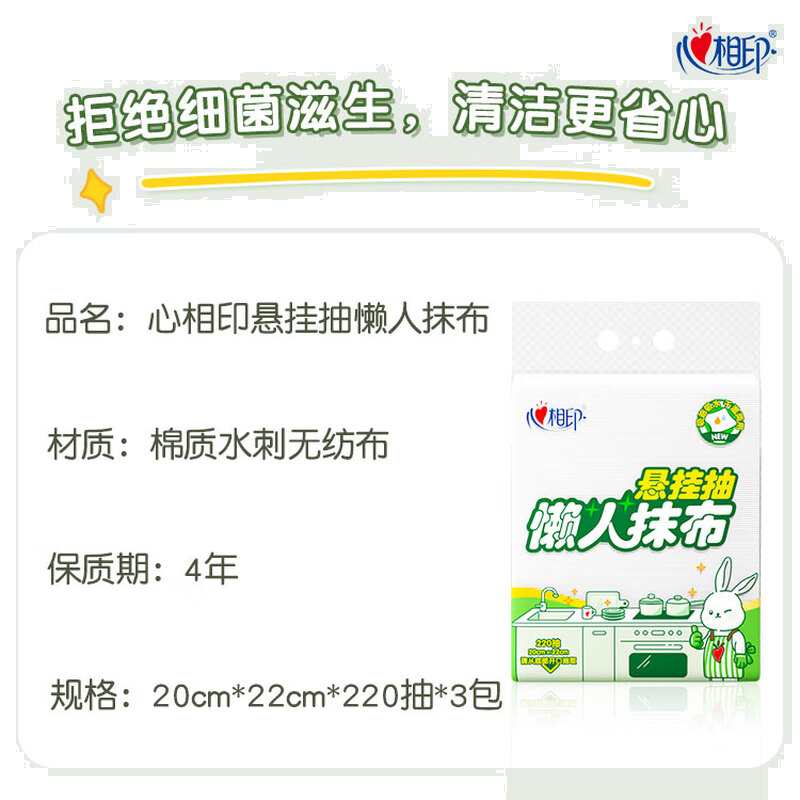心相印懒人抹布悬挂式220抽*3包共660抽 吸水吸油 厨房用纸