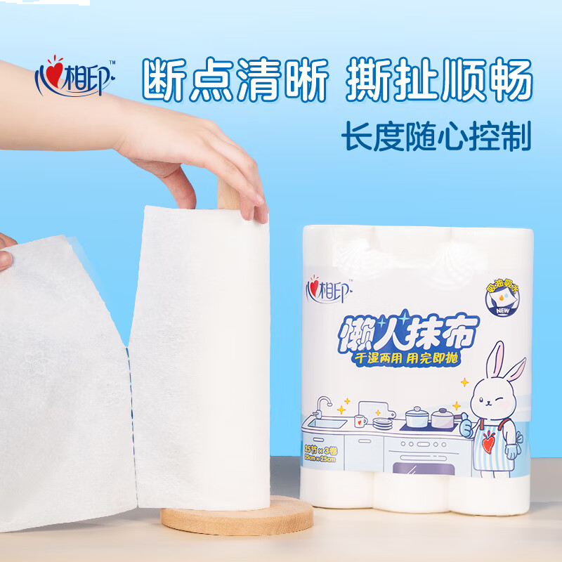 心相印 懒人抹布 卷式25张*3卷 加厚吸水 厨房一次性抹布 干湿两用